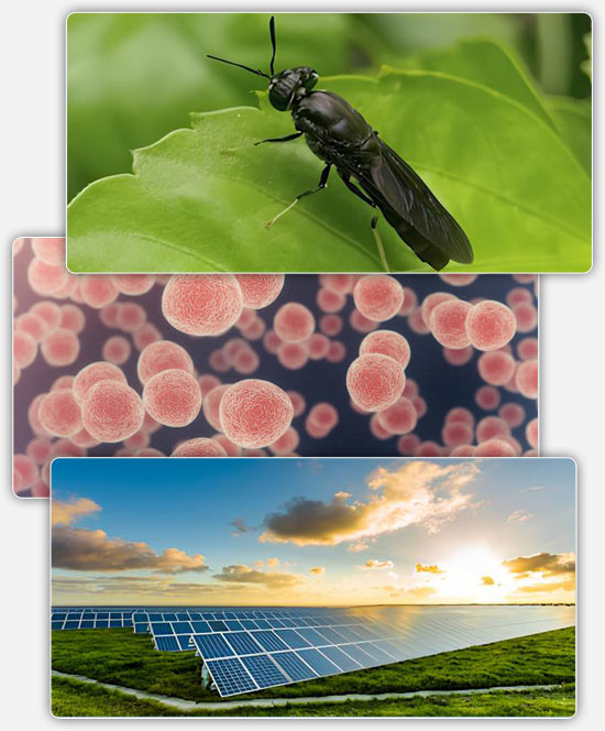 Biosinth transforms agricultural waste with sunlight, insects and microbes into feed and organic fertiliser.